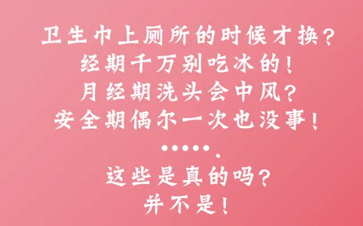 2026-01-22- 卫生巾上厕所的时候才换? 经期千万别吃冰的! 月经期洗头会中风? 安全期偶尔一次也没事! 这些是真的吗? 并不是! 卫生巾多久换一次?